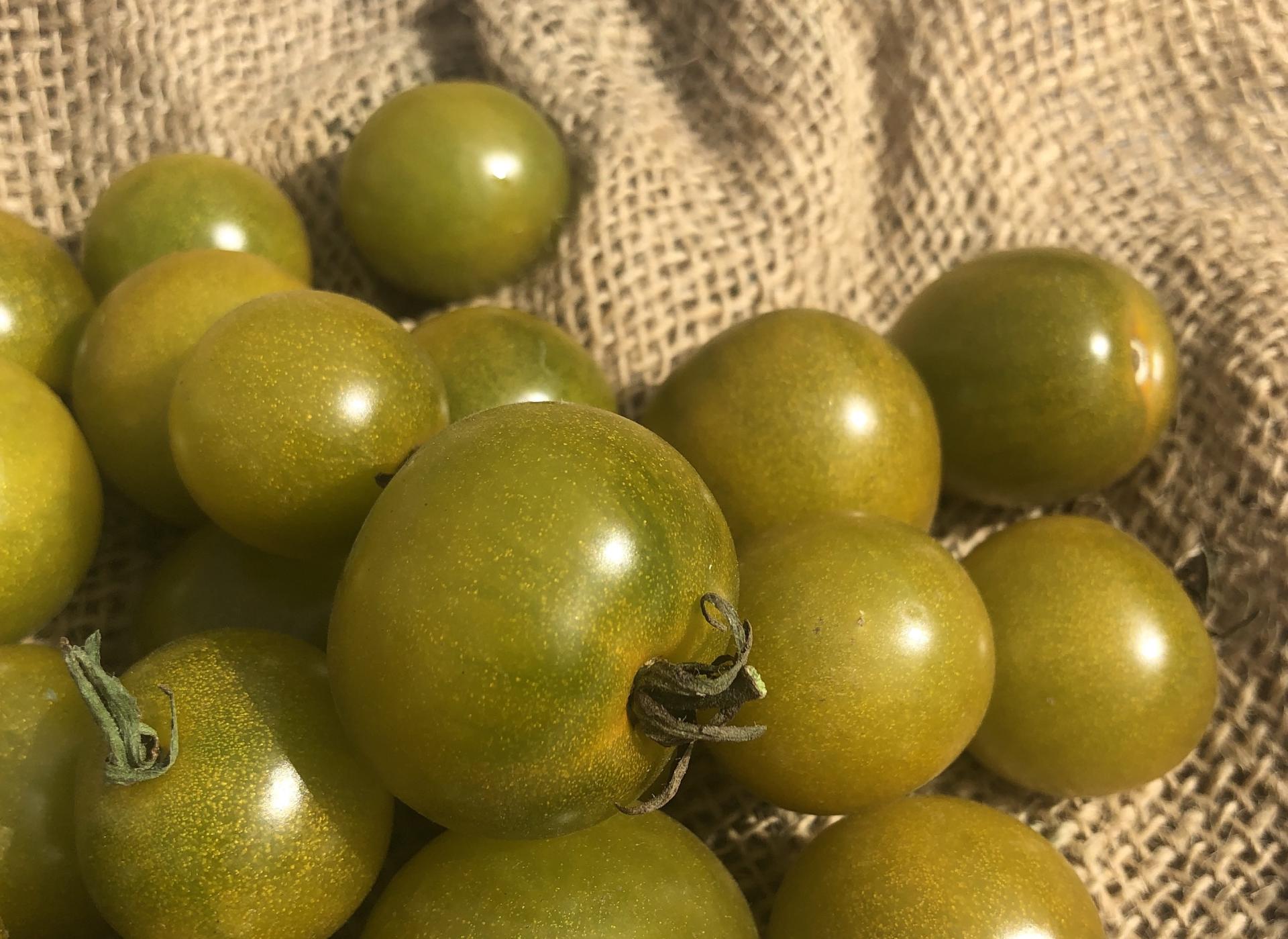 Variété de type « cerise » à feuilles de pomme de terre. Elle donne des grappes d’une douzaine de jolis petits fruits jaune et verts. Chair délicate et très sucrée. Délicieuse. Variété vigoureuse et productive. Port indéterminé.